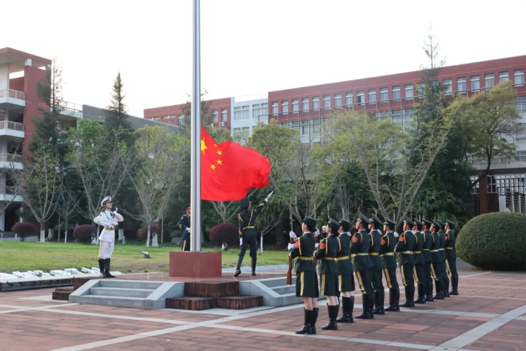 激昂的《中国人民解放军军歌》响彻广场,升国旗仪式正式启幕。伴随着雄壮旋律,鲜艳的五星红旗迎着初升的朝阳缓缓升起。全体师生昂首肃立,行注目礼,齐声高唱国歌。嘹亮的歌声在广场上空久久回荡,每一个音符都承载着对祖国的赤诚热爱,也升腾着属于建规学子的青春自豪。